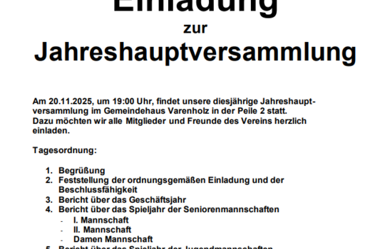 Dazu möchten wir alle Jugendspieler des Vereins und deren Eltern herzlich einladen.....